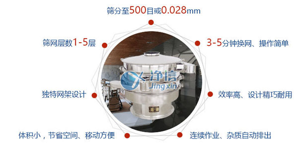 1.篩分過程全封閉,粉末不飛揚、液體不泄露、改善生產環(huán)境,篩分最細可達500目(28微米)過濾最細可達5微米。
